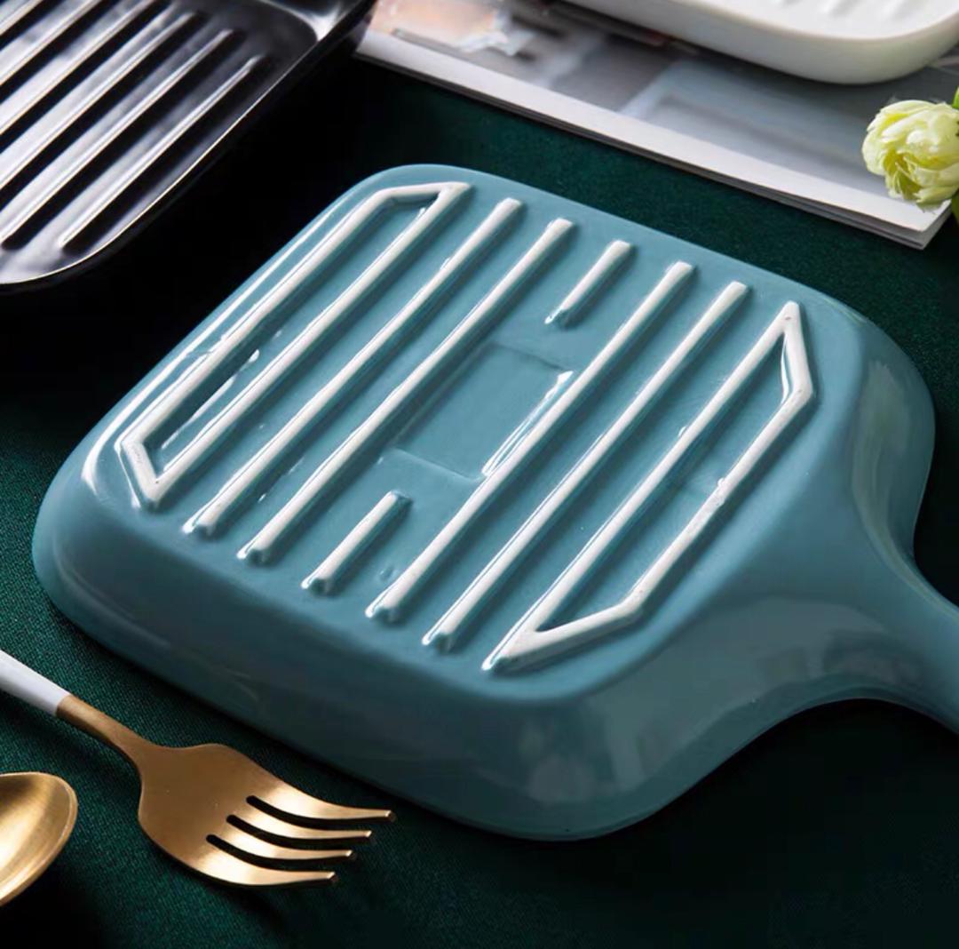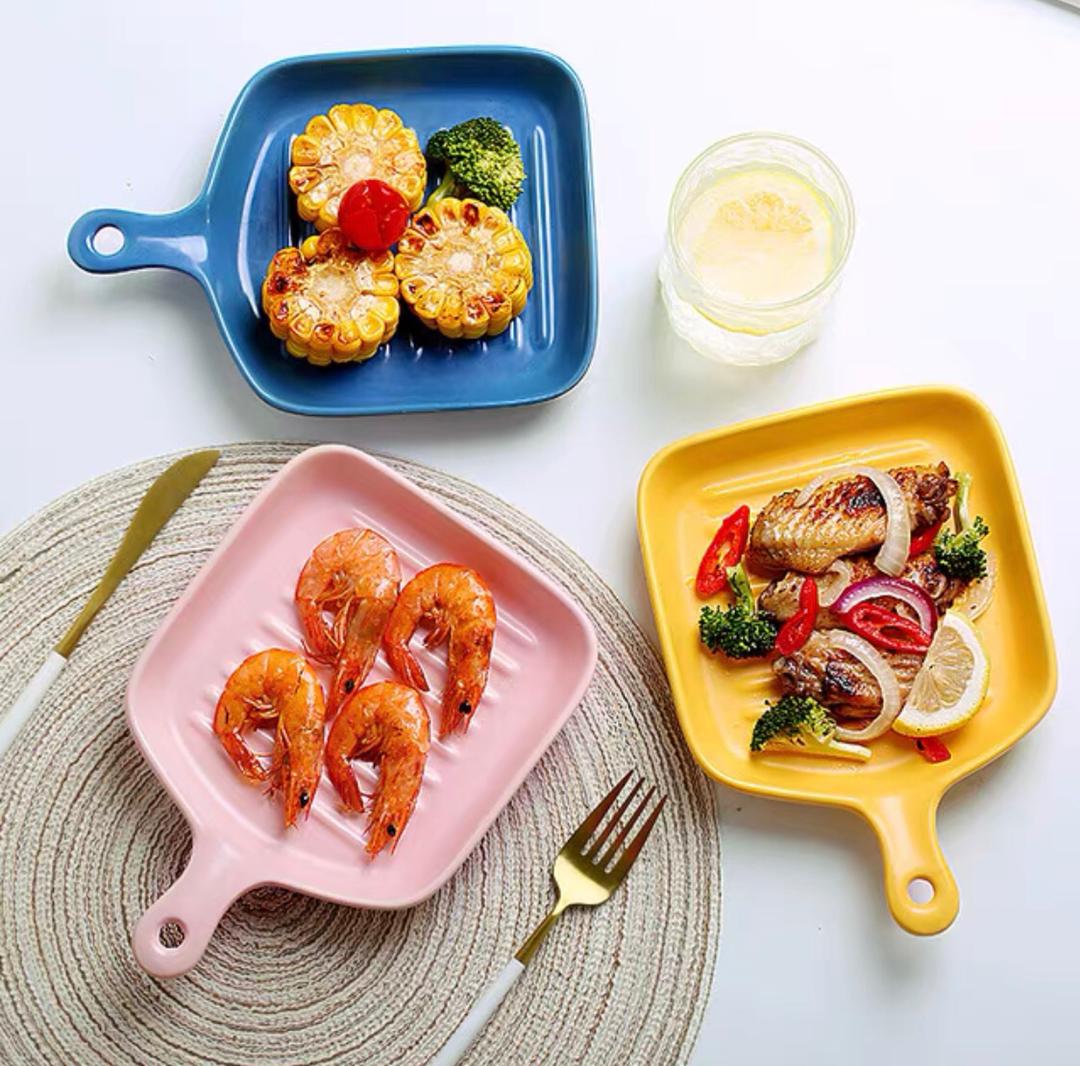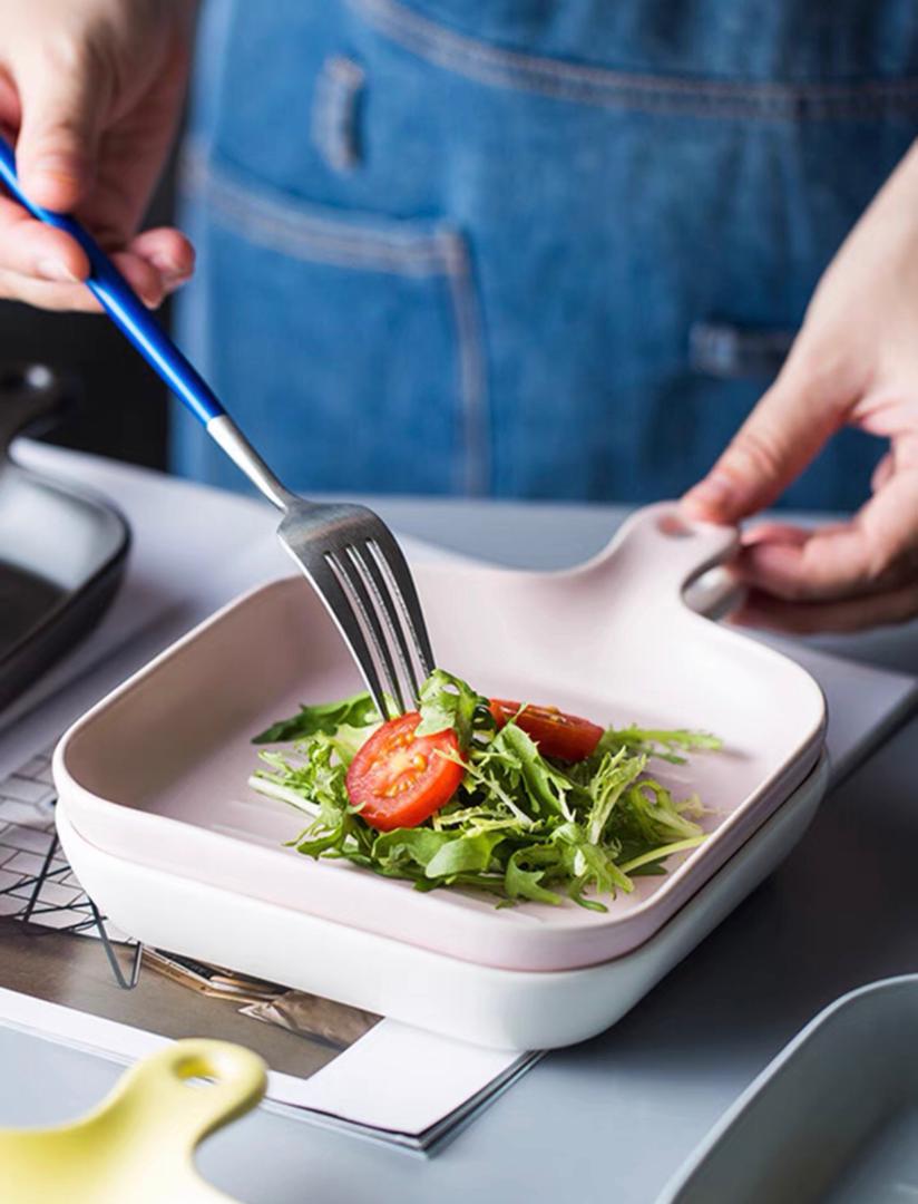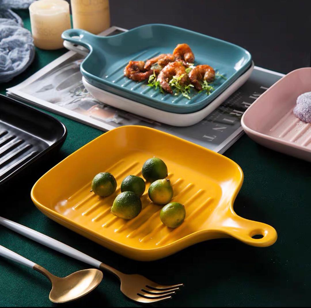 صحن فرن سيراميك مقلم مربع بيد 18*16 سم