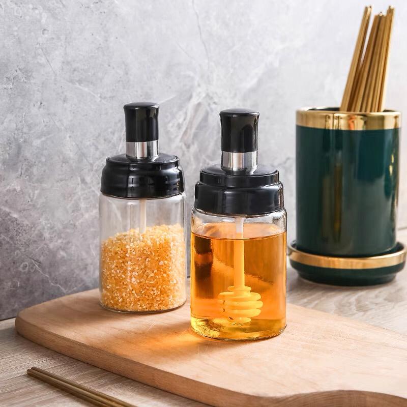 علبة عسل زجاج مع ملعقة AZ-664