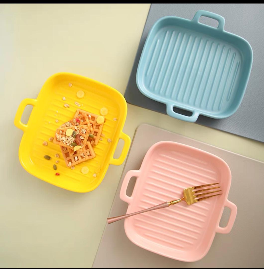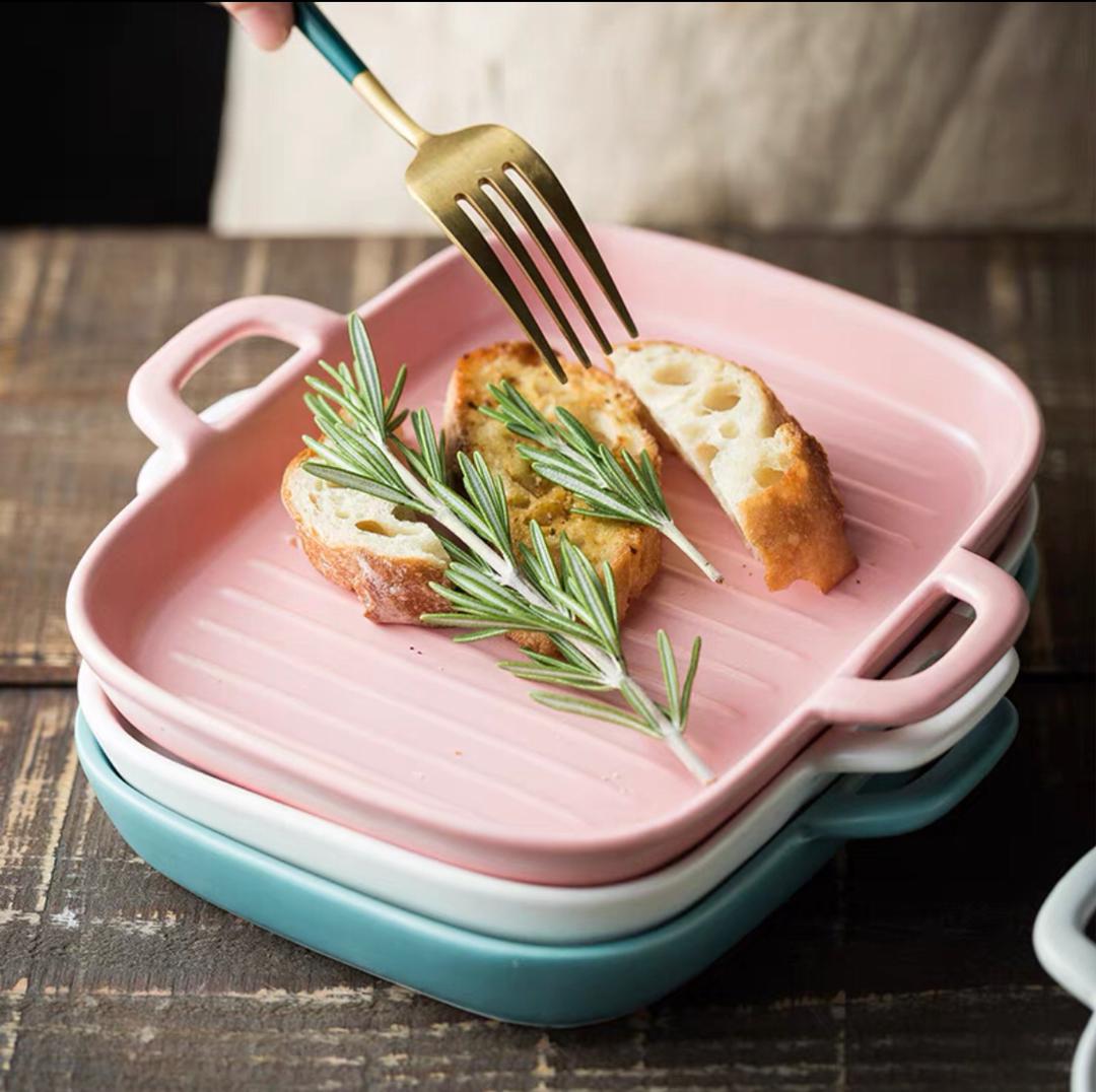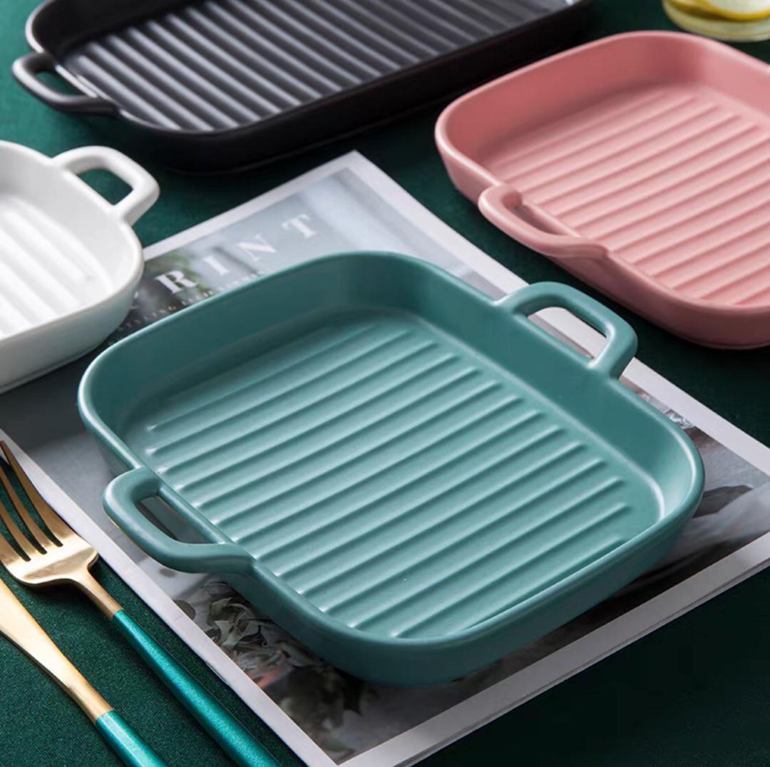 صحن فرن سيراميك مقلم يدين 18*15 سم 56