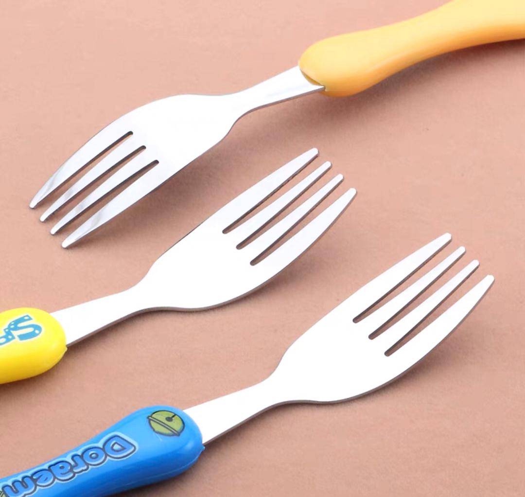 ملعقة+شوكة اطفال ستيل يد بلاستيك *2