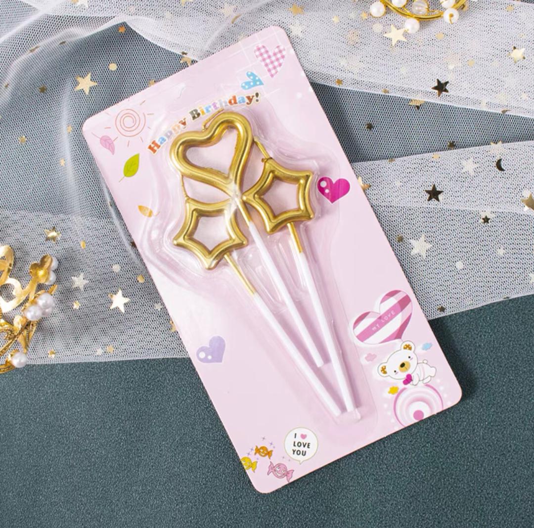 شمع اعياد ميلاد نجوم وقلب 3 قطع 7826-abs
