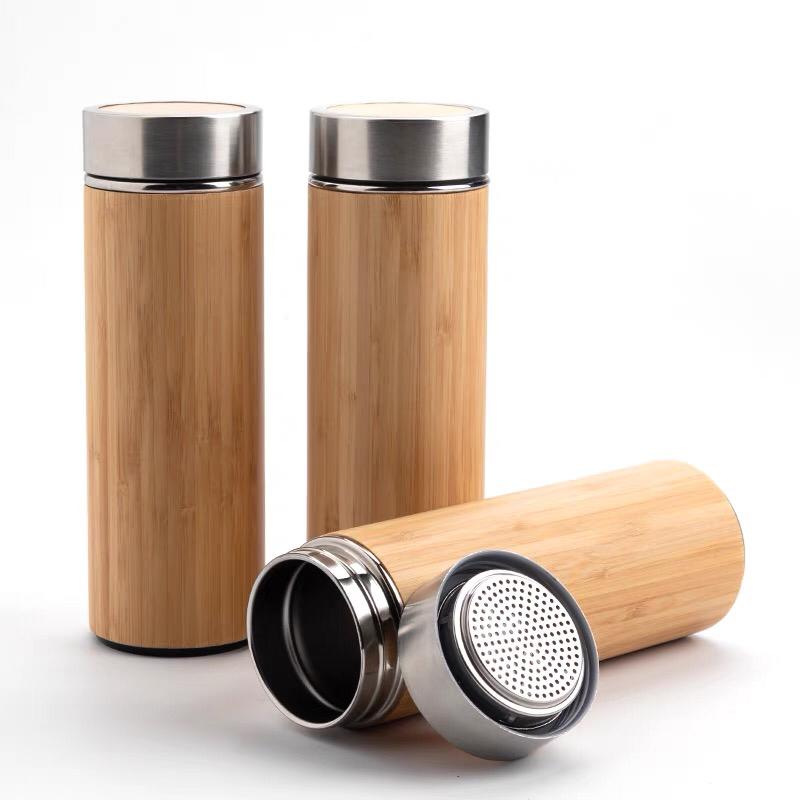 حافظة مشروبات ستيل ملبس خشبي 500 مل 1090