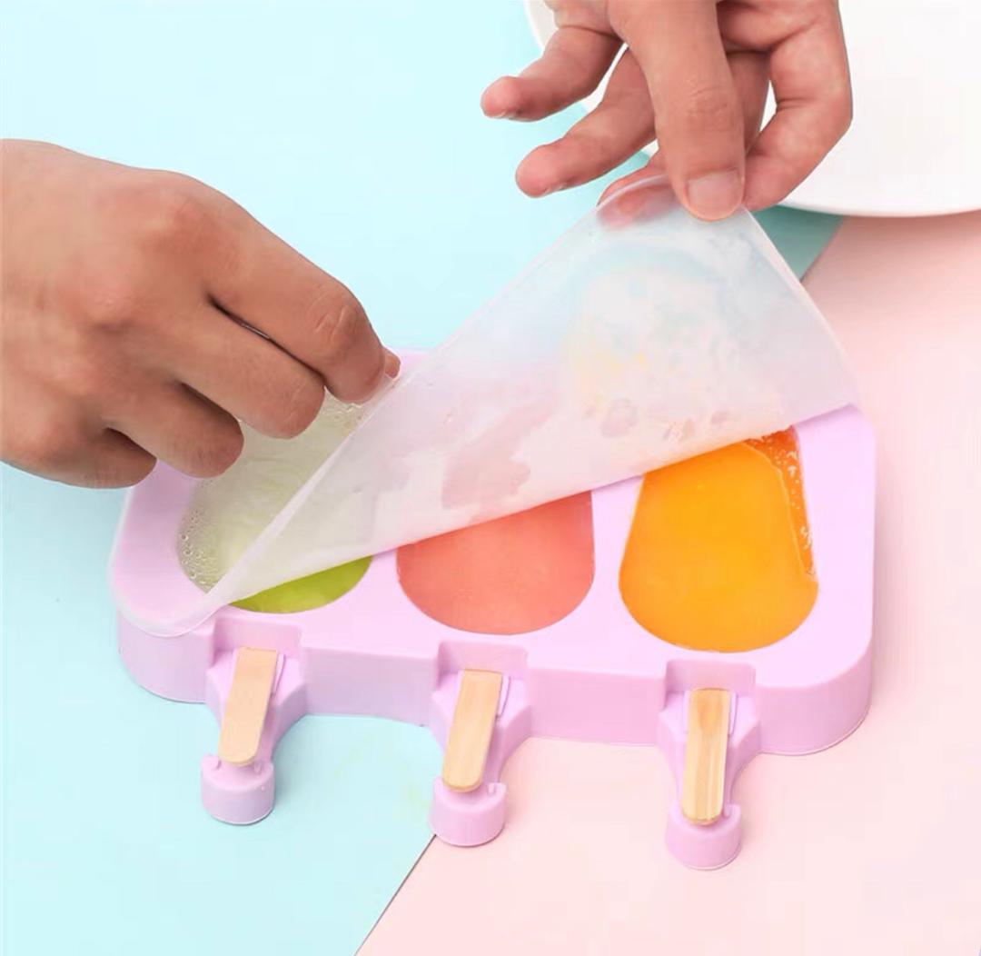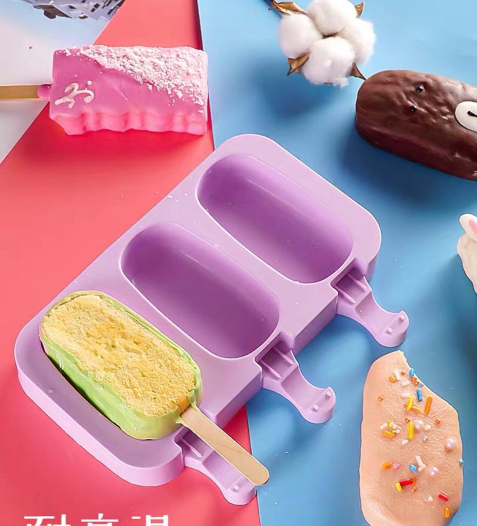 قوالب ايسكريم سليكون 3 خانات مع الاعواد AZ-696