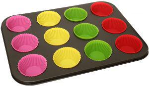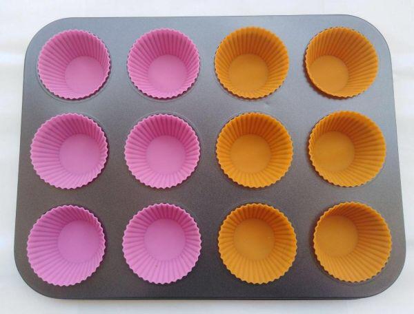 صحن كب كيك 12 خانة مع قوالب سليكون