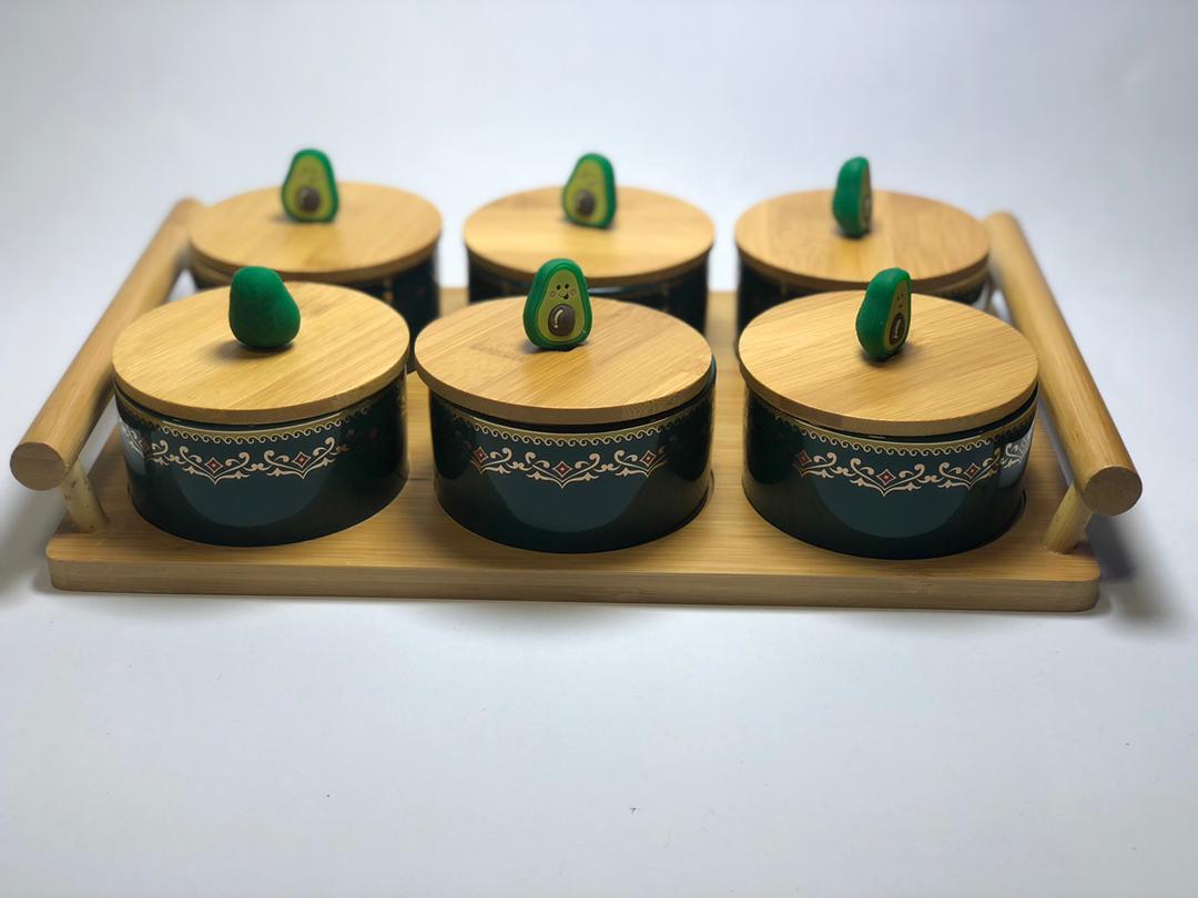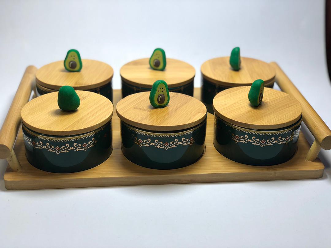 شيال حلويات 6 خانات مع اغطية خشب -قاعدة خشب YB-583
